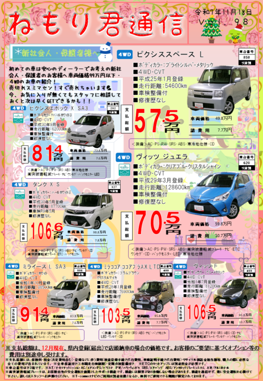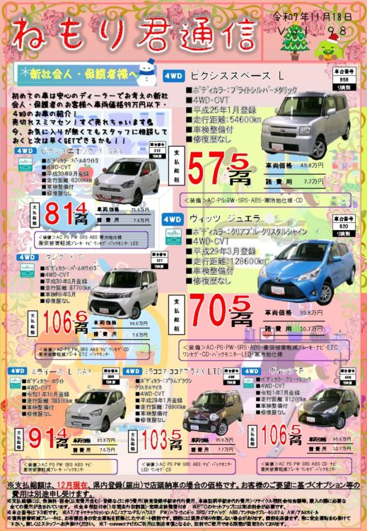 ネッツ盛岡の最新U-car情報を届している「ねもり君通信」、