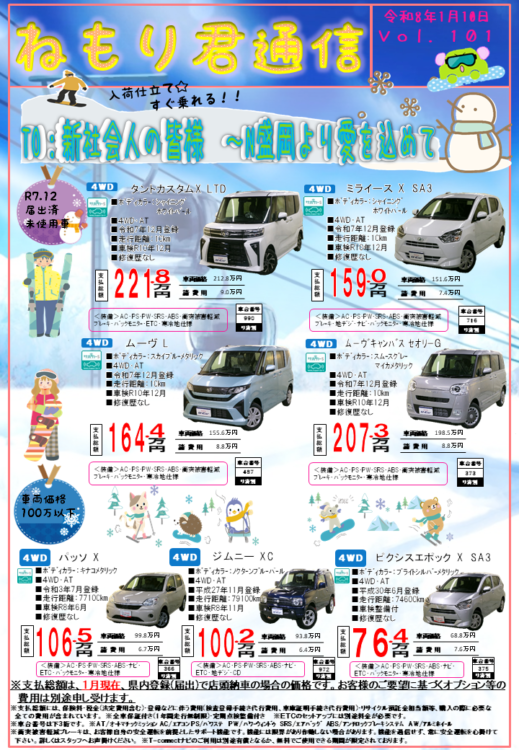 ネッツ盛岡の最新U-car情報をお届けしている「ねもり君通信」、