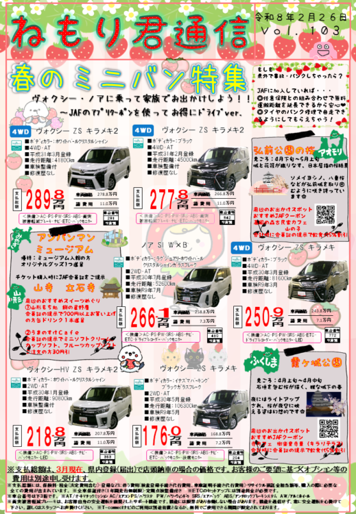 ネッツ盛岡の最新U-car情報をお届けしている「ねもり君通信」、