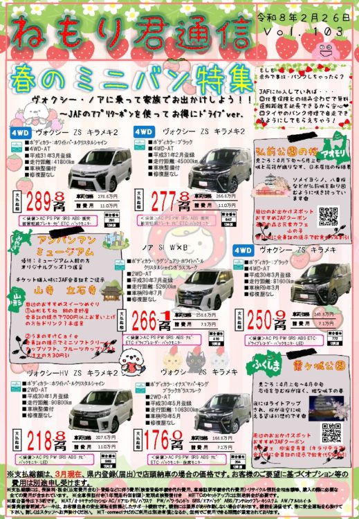ネッツ盛岡の最新U-car情報をお届けしている「ねもり君通信」、