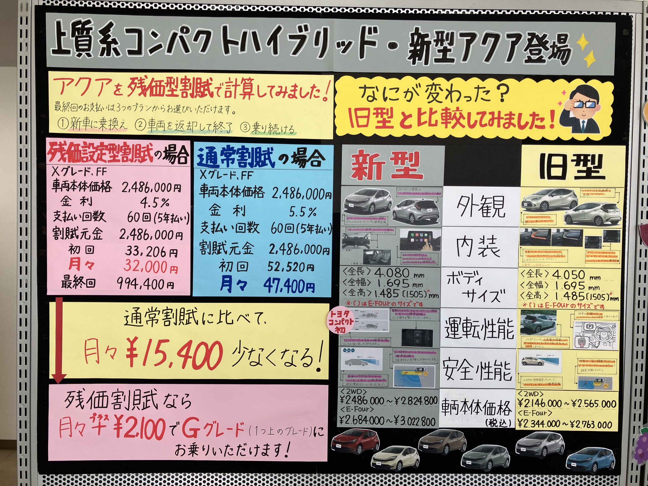 新型アクア誕生!!🌟人気のコンパクトカーが進化しました!詳しくはスタッフにお尋ねください!(^^)/