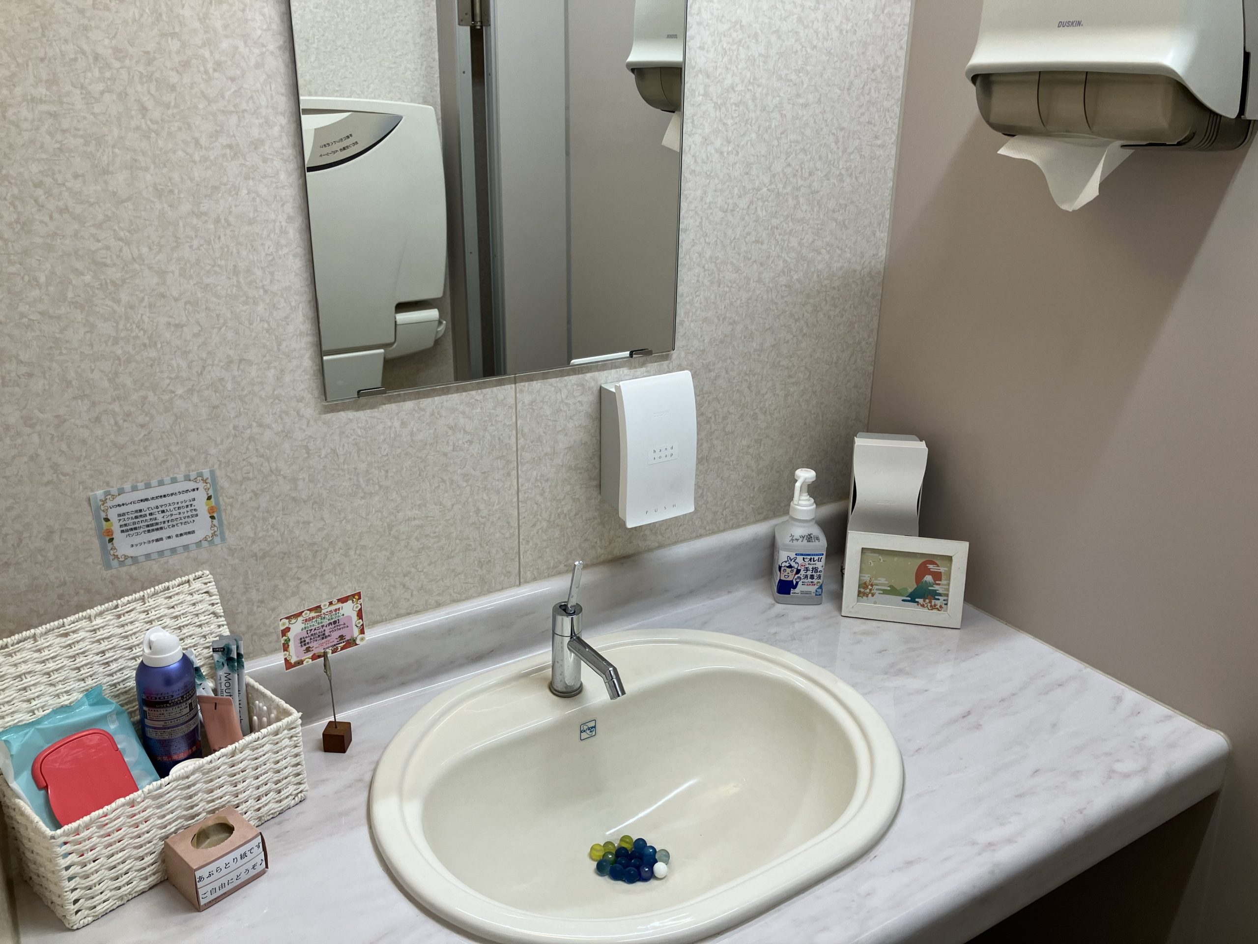 各種アメニティをご用意しております。女子トイレにはベビーシートもご用意しております👶